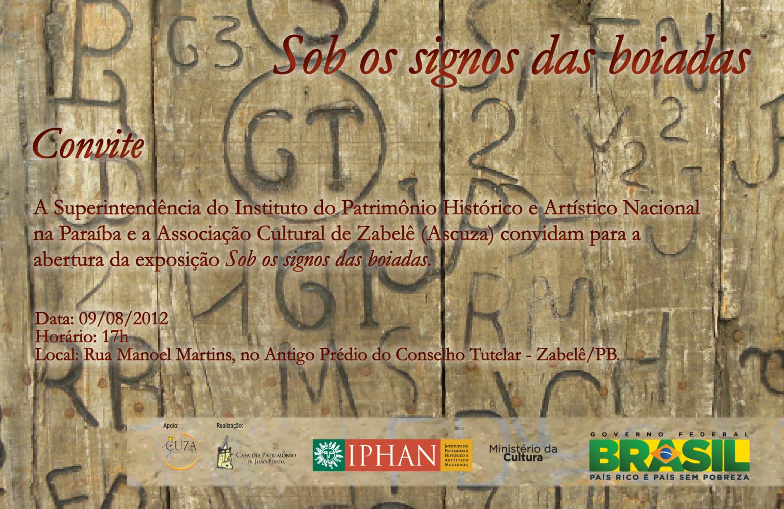 A tradição do sertão brasileiro, as artes dos ofícios de vaqueiro e ferreiro, são o tema da exposição Sob os signos das Boiadas que a Casa do Patrimônio de João Pessoa apresenta para a comunidade de Zabelê, na Paraíba. A abertura da mostra será no dia 9 de agosto, às 17h. Fruto de uma pesquisa desenvolvida no Instituto do Patrimônio Histórico e Artístico Nacional na Paraíba (Iphan-PB) por meio do Programa de Mestrado em Patrimônio Cultural, a exposição destaca as manifestações culturais do sertão, evidenciando a força e complexidade da tradição dos ferros de marcar gado e dos ofícios do ferreiro e do vaqueiro. Após passar pelos municípios de João Pessoa, Sousa, Aparecida, São Francisco e Nazarezinho, a mostra segue para o a região do Cariri.