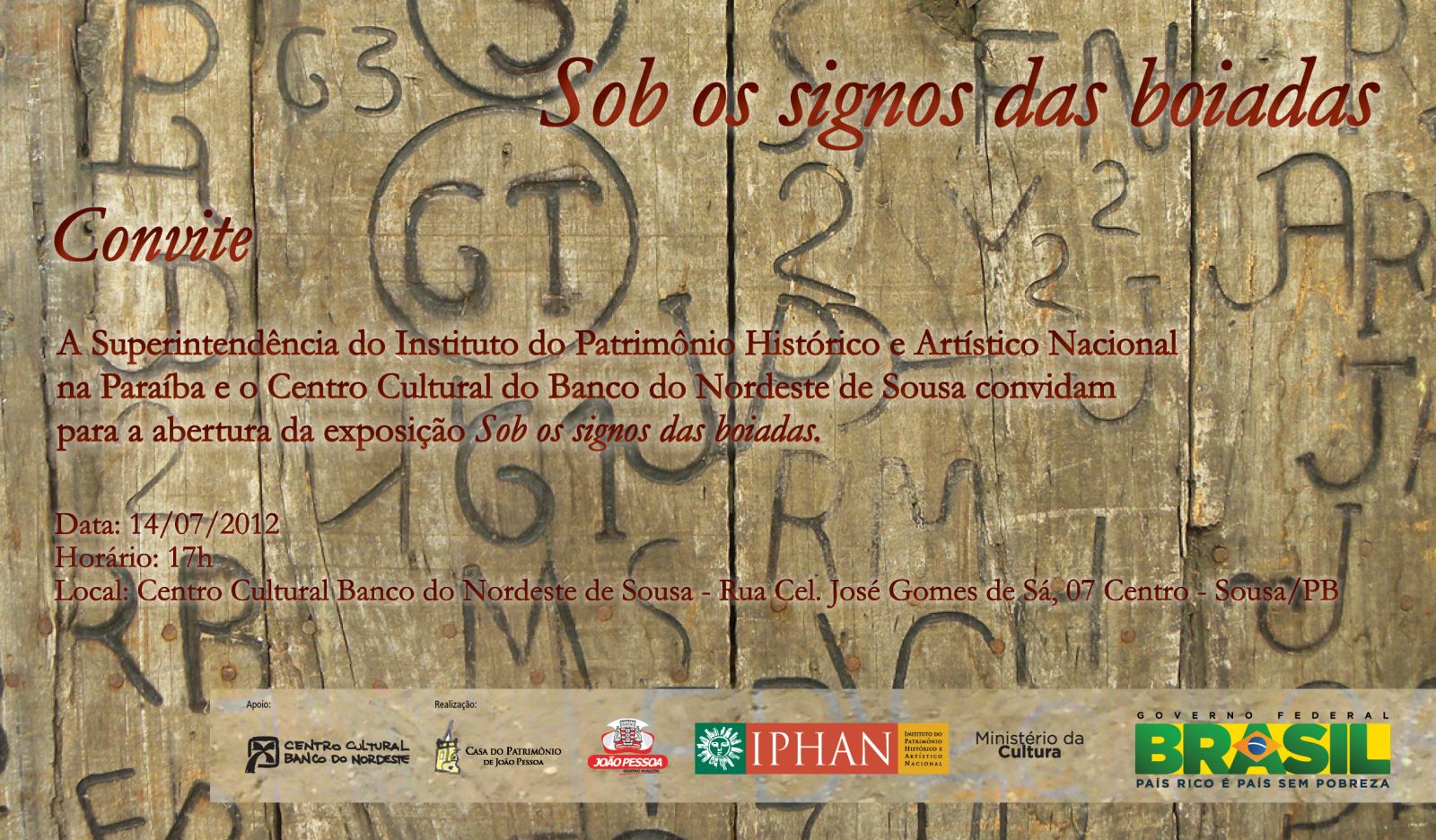 Uma tradição do sertão brasileiro, as artes dos ofícios de vaqueiro e ferreiro, é o tema da exposição Sob os signos das Boiadas que a Casa do Patrimônio de João Pessoa e o Centro Cultural Banco do Nordeste apresentam para a comunidade de Sousa, na Paraíba. A abertura da mostra será no próximo dia 14 de julho, às 17h. Fruto de uma pesquisa desenvolvida no Iphan-PB por meio do Programa de Mestrado em Patrimônio Cultural, a exposição destaca as manifestações culturais do sertão, evidenciando a força e complexidade da tradição dos ferros de marcar gado e dos ofícios do ferreiro e do vaqueiro. Após passar por João Pessoa, a mostra segue para o sertão paraibano.